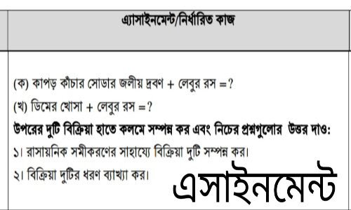 চতুর্থ সপ্তাহের নবম শ্রেণির রসায়ন এসাইনমেন্ট উত্তর পার্ট ২