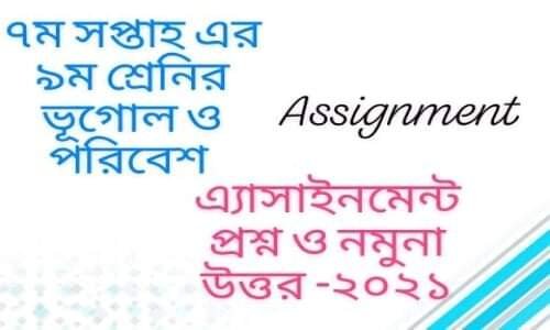 ৭ম সপ্তাহ এর ৯ম শ্রেনির ভূগোল ও পরিবেশ এ্যাসাইনমেন্ট প্রশ্ন ও নমুনা উত্তর-২০২১