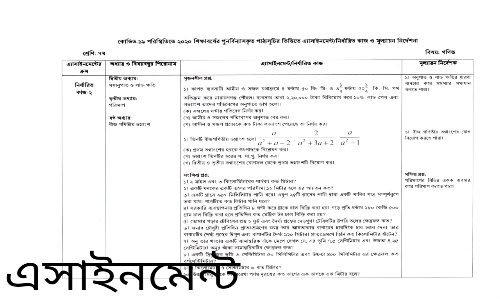 পঞ্চম সপ্তাহের সপ্তম শ্রেণির গনিত এসাইনমেন্ট উত্তর